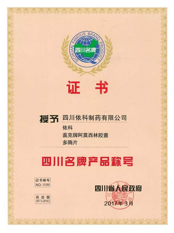 公司高度重视品牌战略,依法注册了“盖克”、“蜀中”、“三星堆”、“阿莫锋”、“益善源”、“蓉通”、“pg电子在线模拟器”等108件注册商标,1999年“盖克”、2003年“蜀中”、2007年“三星堆”被认定为德阳市知名商标,2001年“盖克”、2004年“蜀中”被认定为四川省著名商标, 2008年“盖克”商标被国家工商行政管理总局认定为“中国驰名商标”。2017年3月,公司盖克牌、pg电子在线模拟器牌阿莫西林胶囊和多酶片被四川省人民政府授予四川名牌产品称号。2016年,公司实现营业收入66373万元,利税7600万元;2017年,公司实现营业收入75045万元,利税7572万元。公司2017年被命名为德阳市第七批院士专家工作站,2016-2018连续三年被德阳市人民政府确定为重点龙头企业。